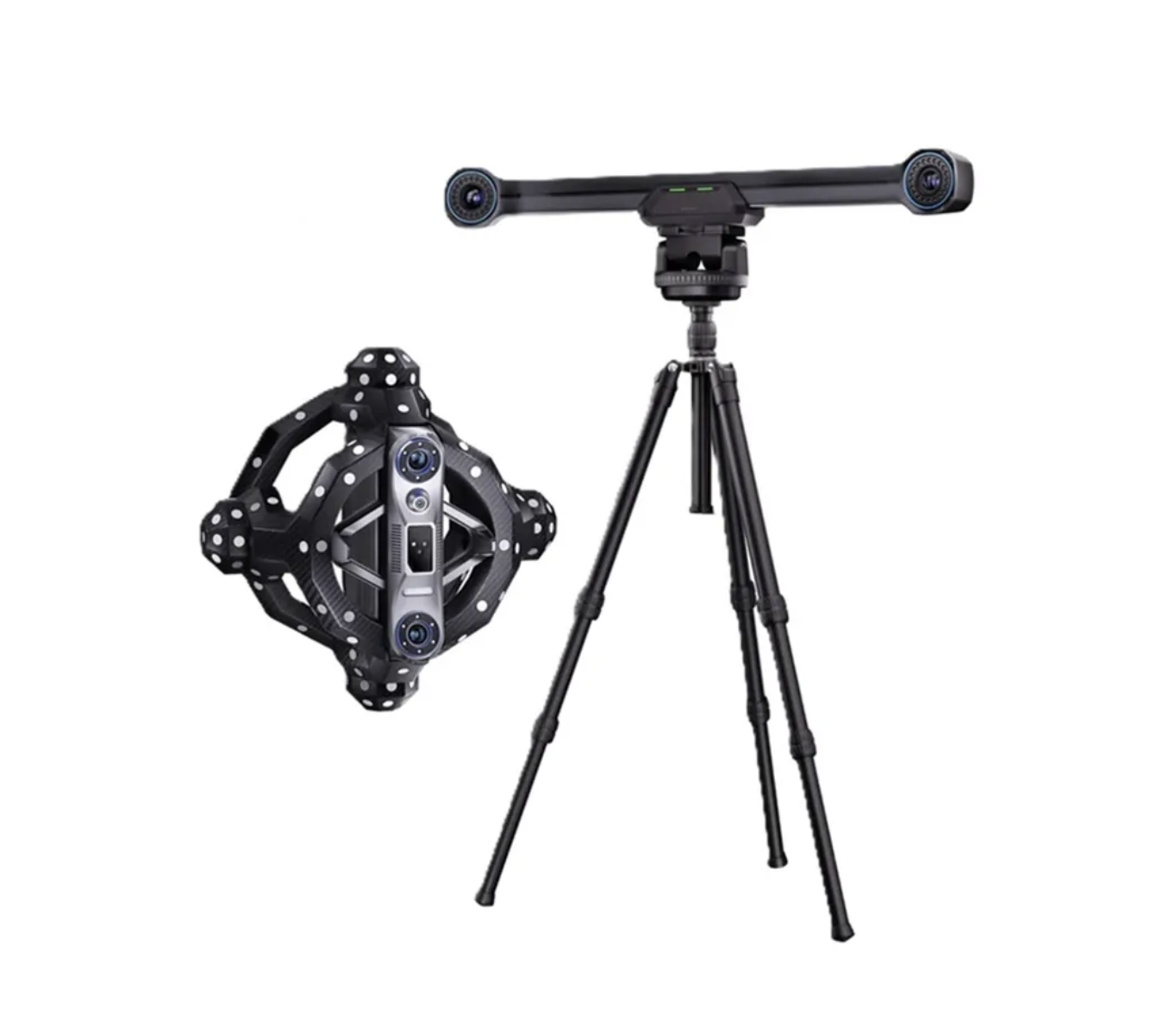 光學追蹤搭配最大高度 1.3 公尺的專用光學腳架,能 穩定提供掃描器的基準坐標點,不僅免貼點作業,也顯著提升建模一致性與體積精度。追蹤框面積最大支援 2800 × 2800 mm(於 4 公尺距離下),可廣泛應用於 車體建模、展件掃描、設備維修 等工程環境中。